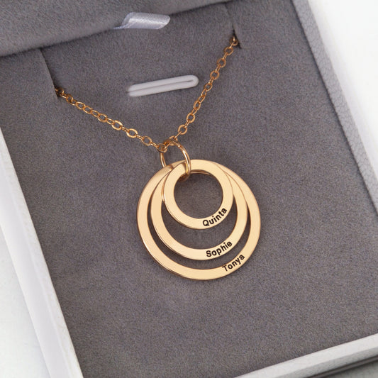 Collier personnalisé prénom cercles imbriqués pour couple