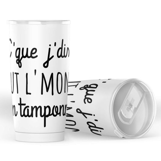 Gobelet amusant "c'que j'dis tout l'monde s'en tamponne" en acier inoxydable