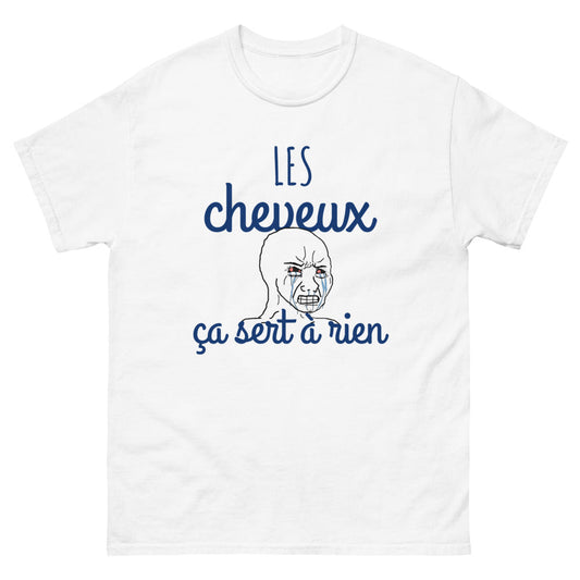T-shirt mème face déssiné Les cheveux ça sert à rien