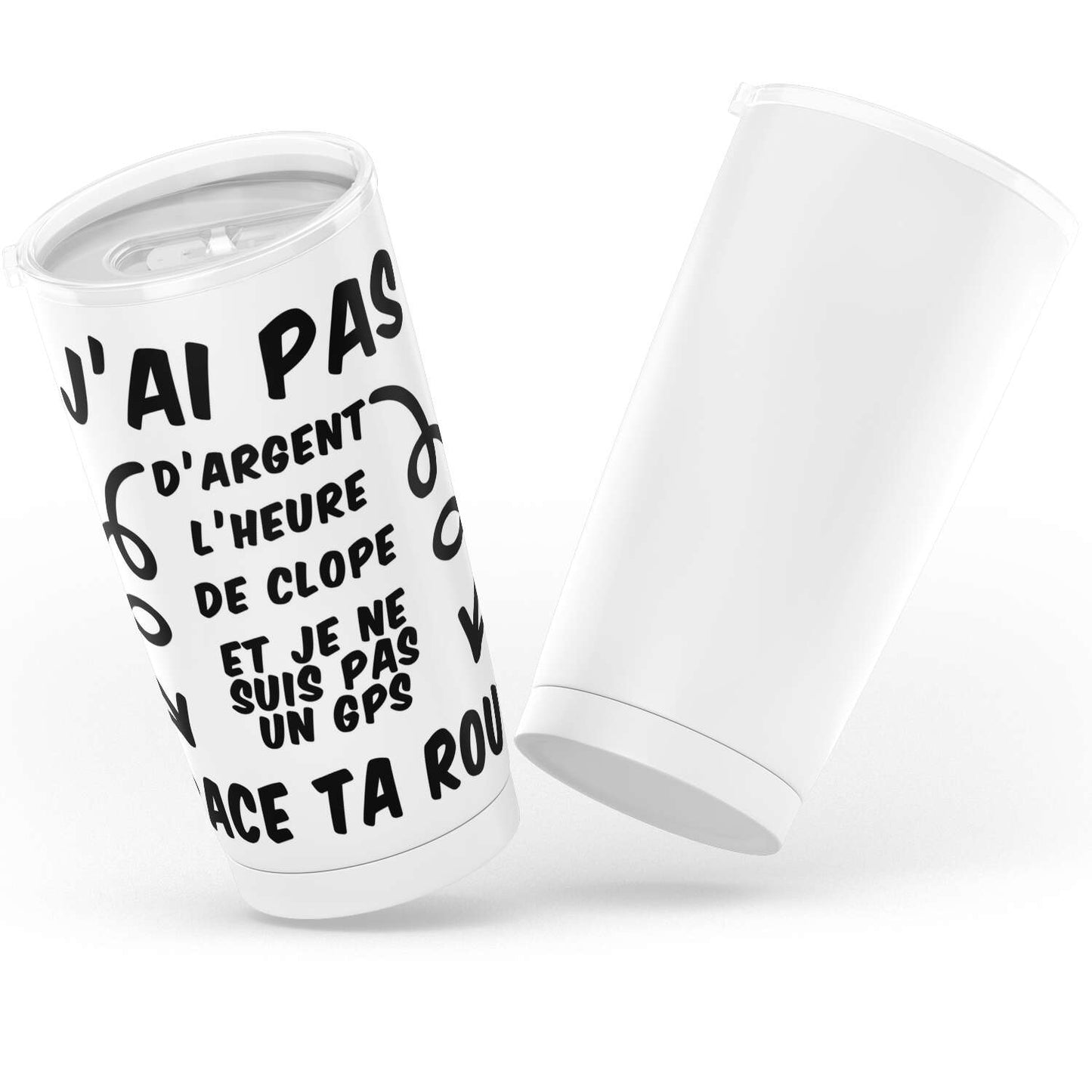 Gobelet en acier inoxydable "J'ai pas d'argent trace ta route"