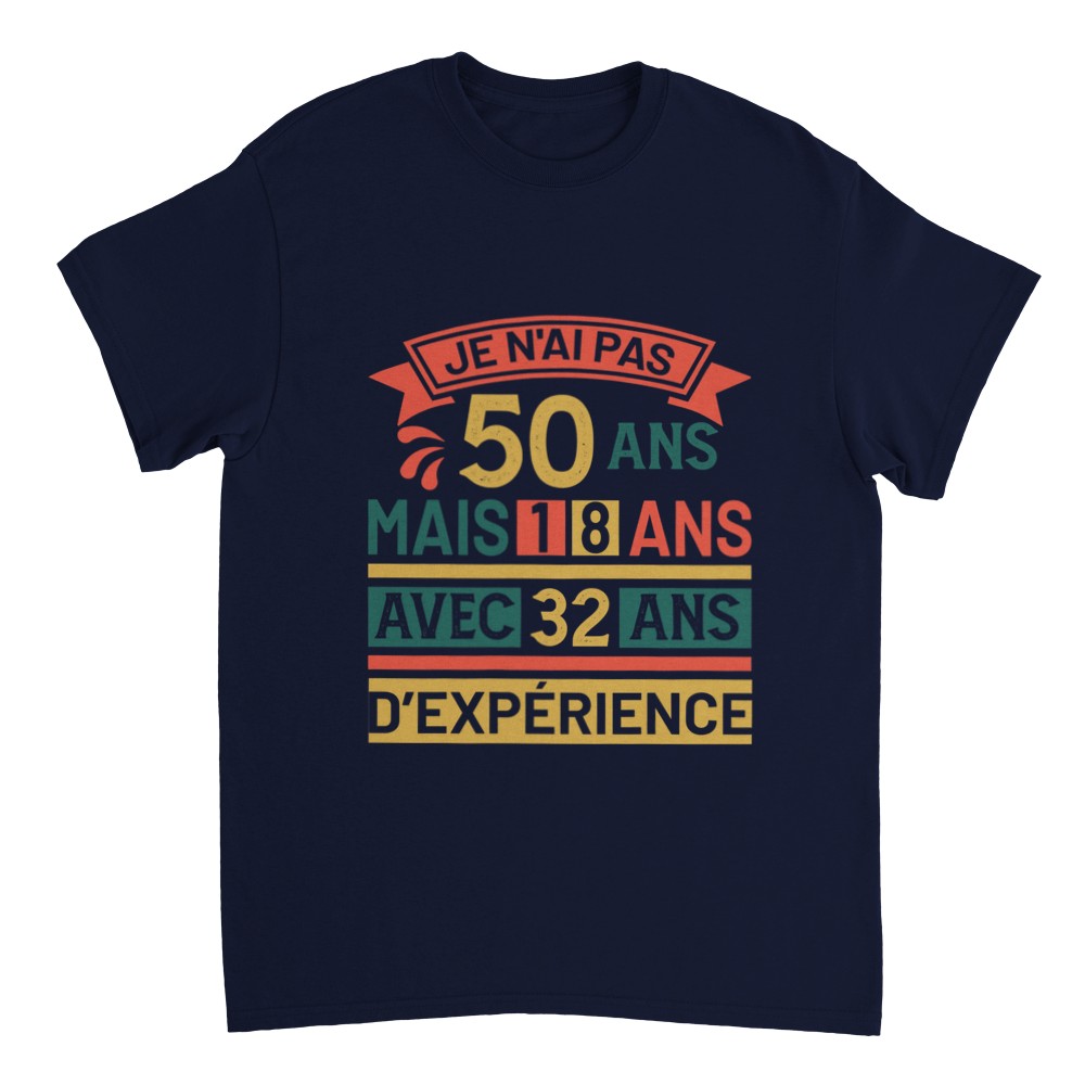 T-shirt je n'ai pas 50 ans mais 18 ans avec 32 ans d'expérience. Design original #vadormirva.